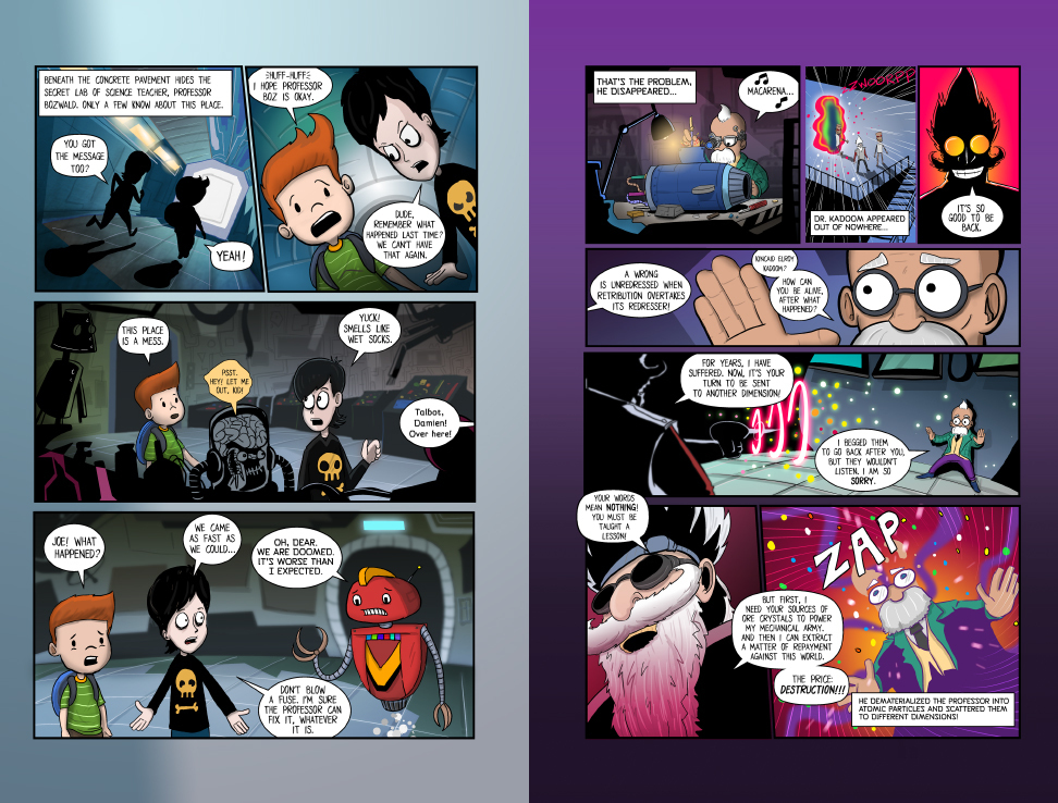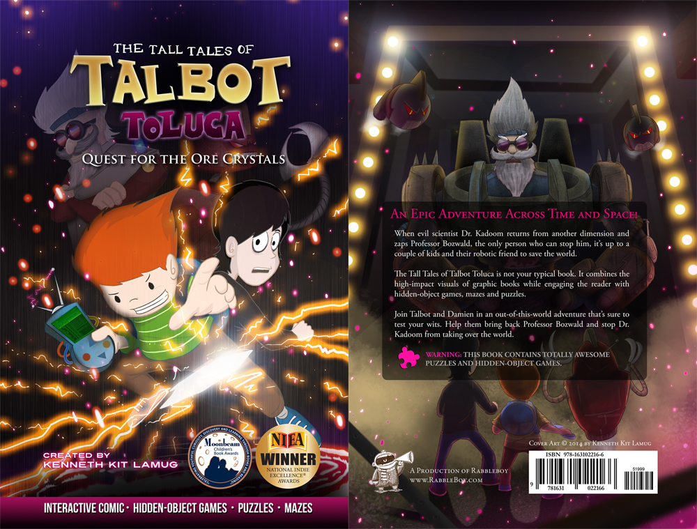 When evil scientist Dr. Kadoom returns from another dimension and zaps Professor Bozwald, the only person who can stop him, it's up to a couple of kids and their robotic friend to save the world. The Tall Tales of Talbot Toluca is not your typical book. It combines the high-impact visuals of graphic books while engaging the reader with hidden-object games, mazes and puzzles. Join Talbot and Damien in an out-of-this-world adventure that's sure to test your wits. Help them bring back Professor Bozwald and stop Dr. Kadoom from taking over the world. This book contains puzzles, hidden-object (where's waldo style) games and more! Talbot Toluca #1 - Quest For The Ore Crystals is a Winner of the 2015 Moon Beam Children's Book Awards and 2015 National Indie Excellence Awards. (Digital PDF Download)